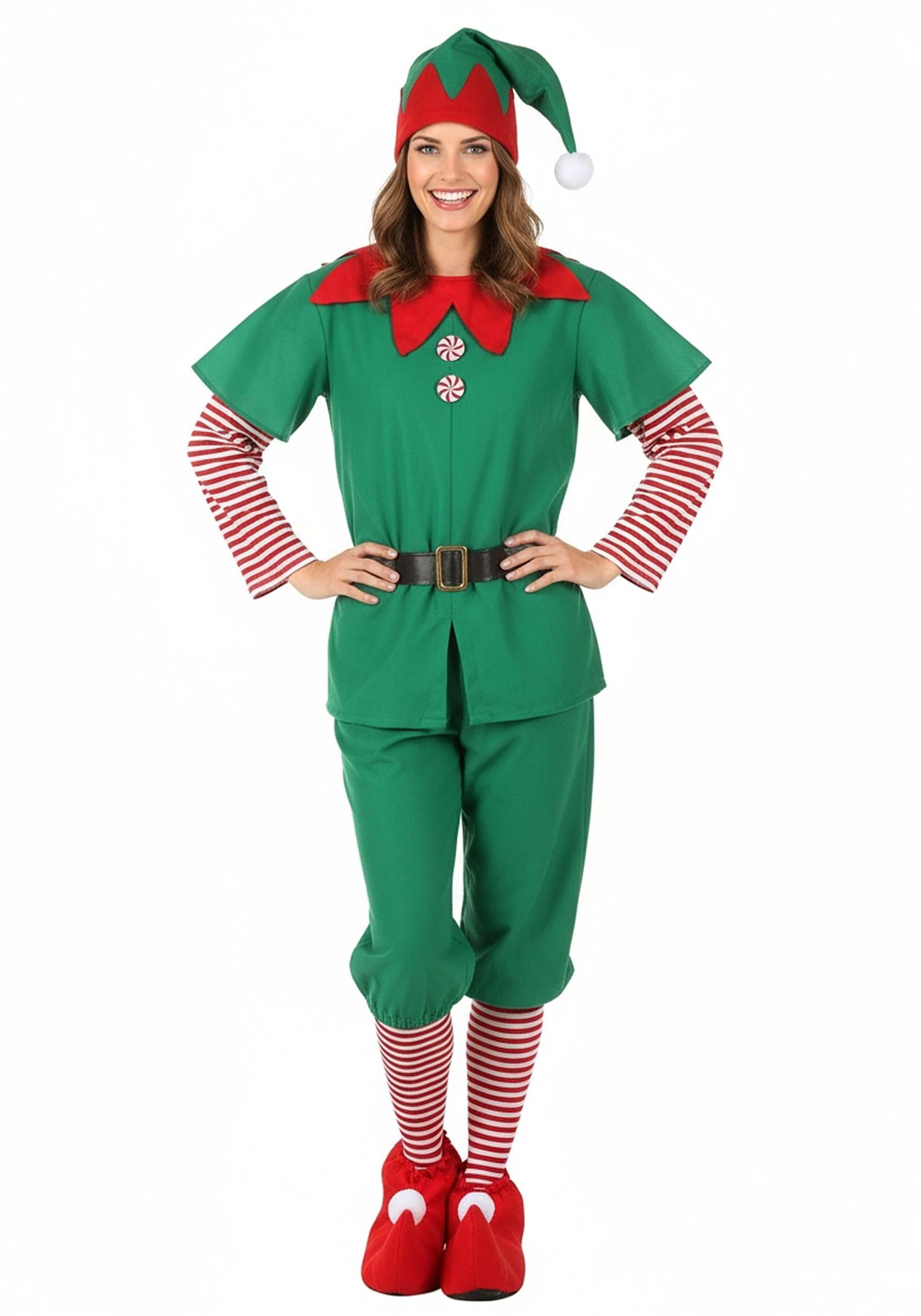 ¡También puedes festejar tan duro como un elfo en nuestro disfraz divertido y festivo! Viene con todo lo que necesitas para lucir navideño en tus fiestas (o para confundir a todos en una fiesta de Halloween). ¡También hacemos esto en tamaños de niños y niños pequeños, para que tus amigos y familiares puedan compartir un poco de espíritu de temporada! Y definitivamente no te olvides de las galletas y el huevo nog ... p>