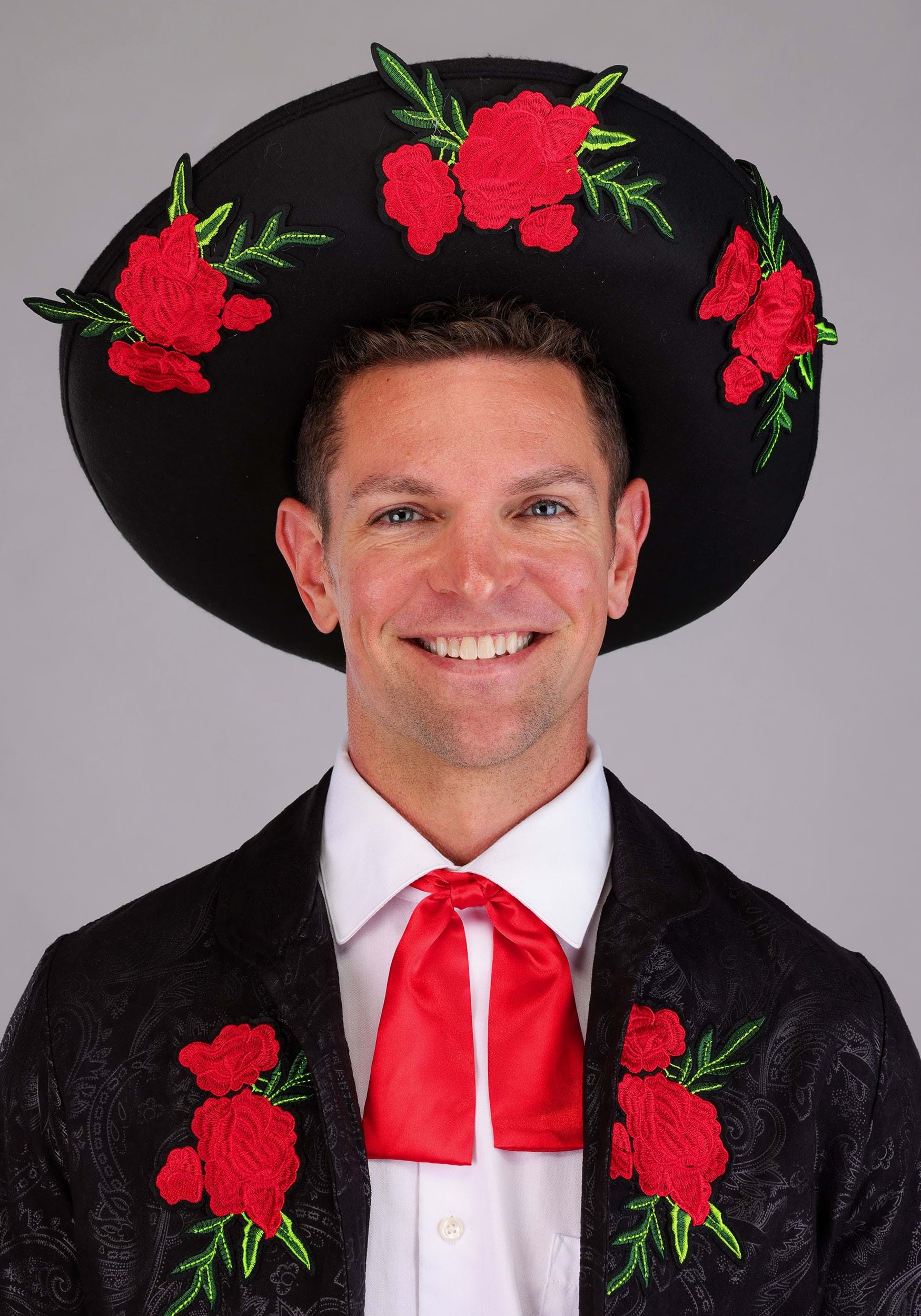 - Molded felt sombrero hat has embroidered roses on turned-up brim