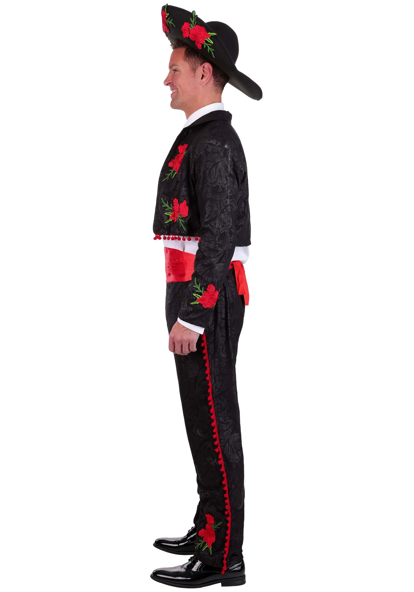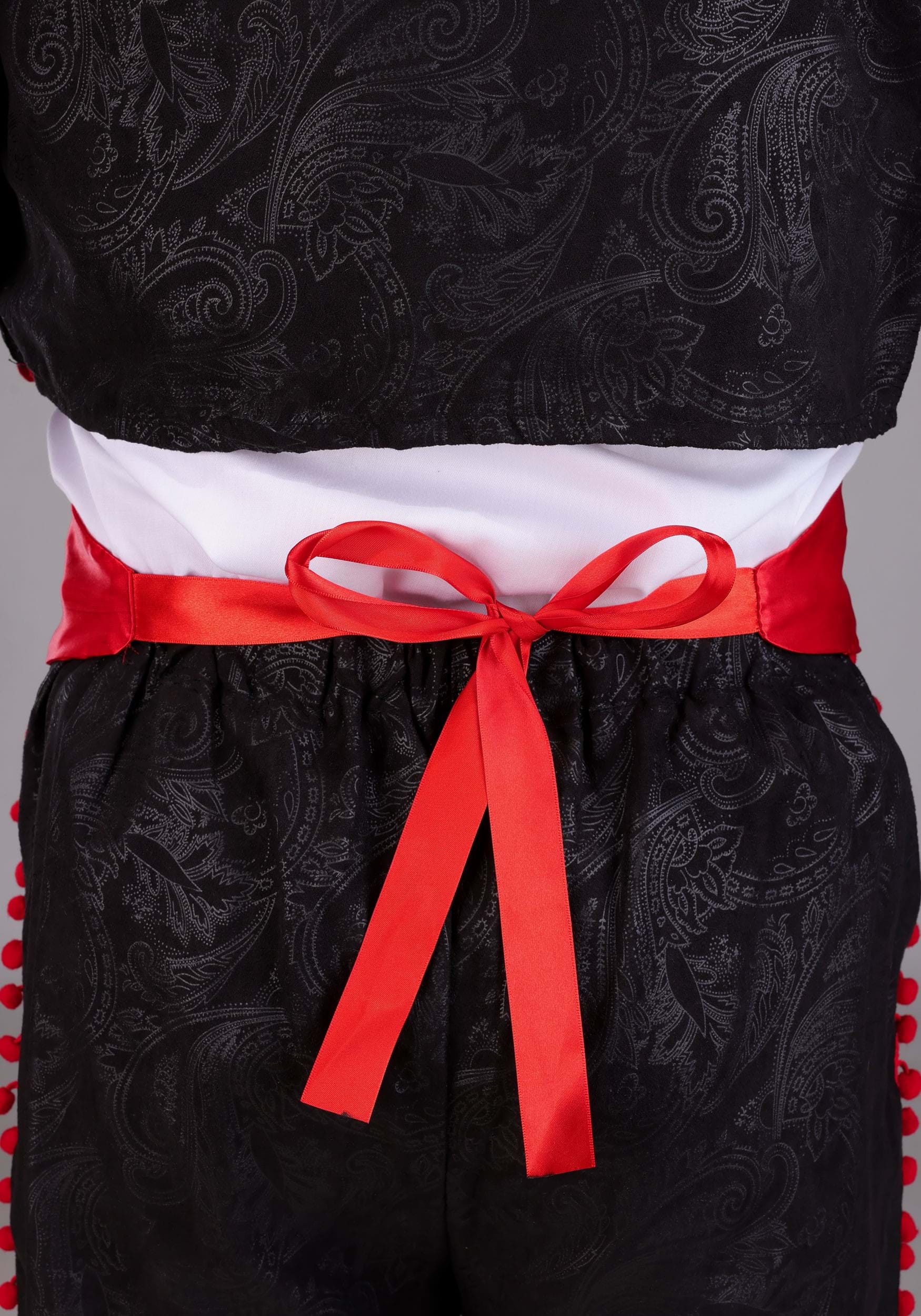 - Pants have ball fringe side stripes, embroidered rose above each cuff