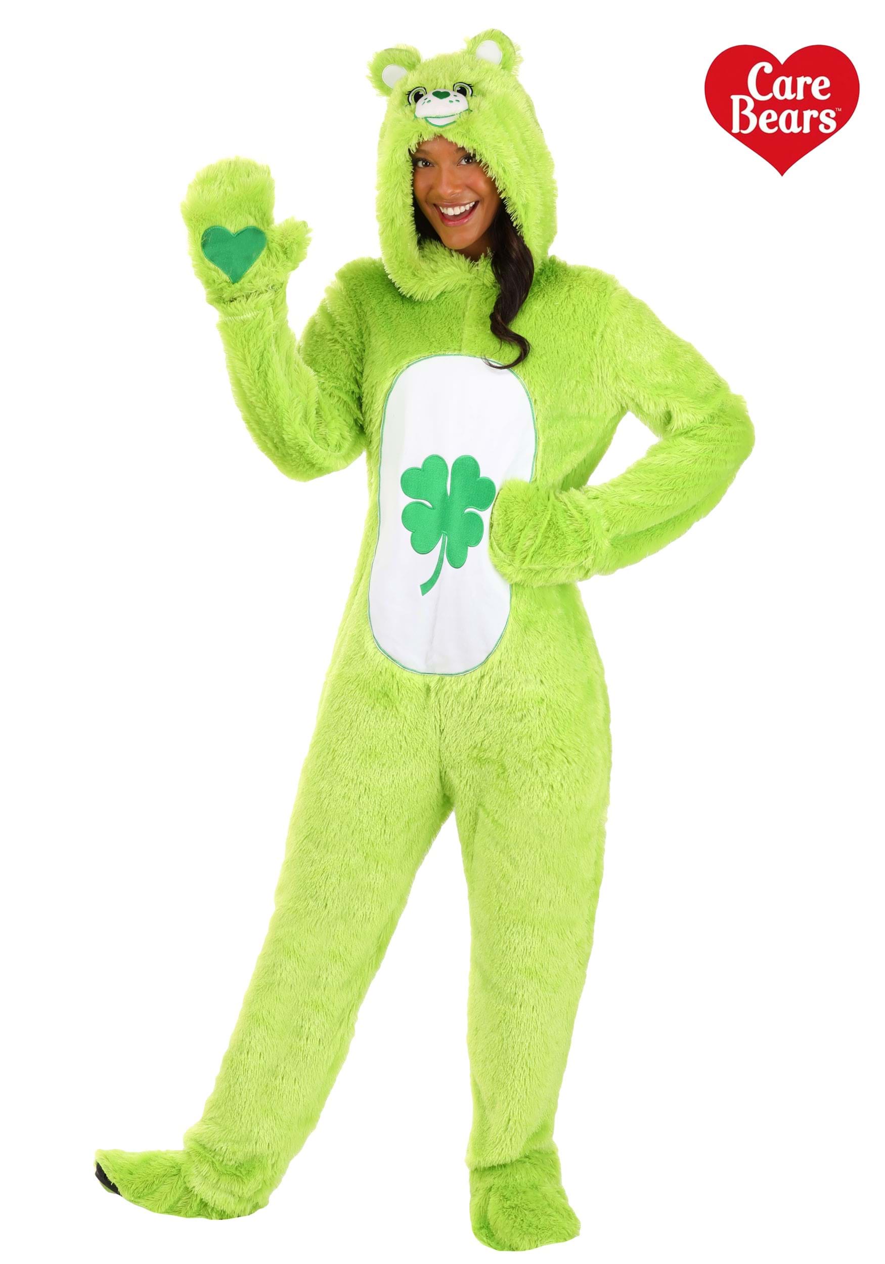 Obtendrás aún mejores vibraciones de los Bear Bears si te disfrazas con este acogedor mono de oso verde. No necesitarás & nbsp; suerte para hacer buenos amigos en este atuendo, ¡es lo suficientemente alegre! Tiene una capucha, mitones y cubiertas de zapatos adjuntas. La capucha tiene ojos bordados, nariz de corazón y orejas dulces y esponjosas. Tiene una gran insignia del vientre de trébol de cuatro hojas & nbsp ;, para que todos sepan de qué se trata. ¡Oye, quién necesita suerte cuando tienes amor! & nbsp; span > p>