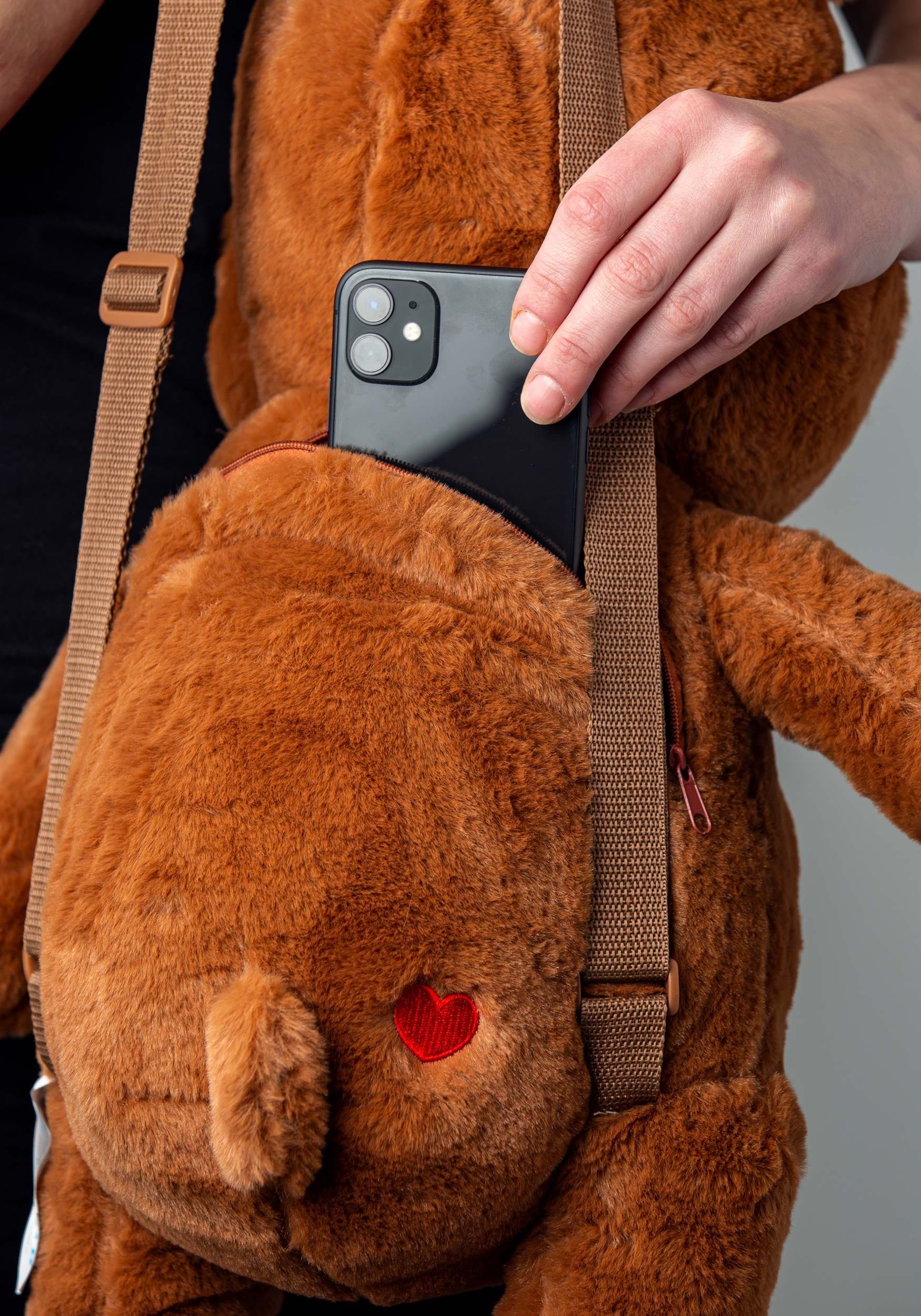 - La bolsa con cremallera en la espalda del oso mide 8 "An. X 8" Alt.
