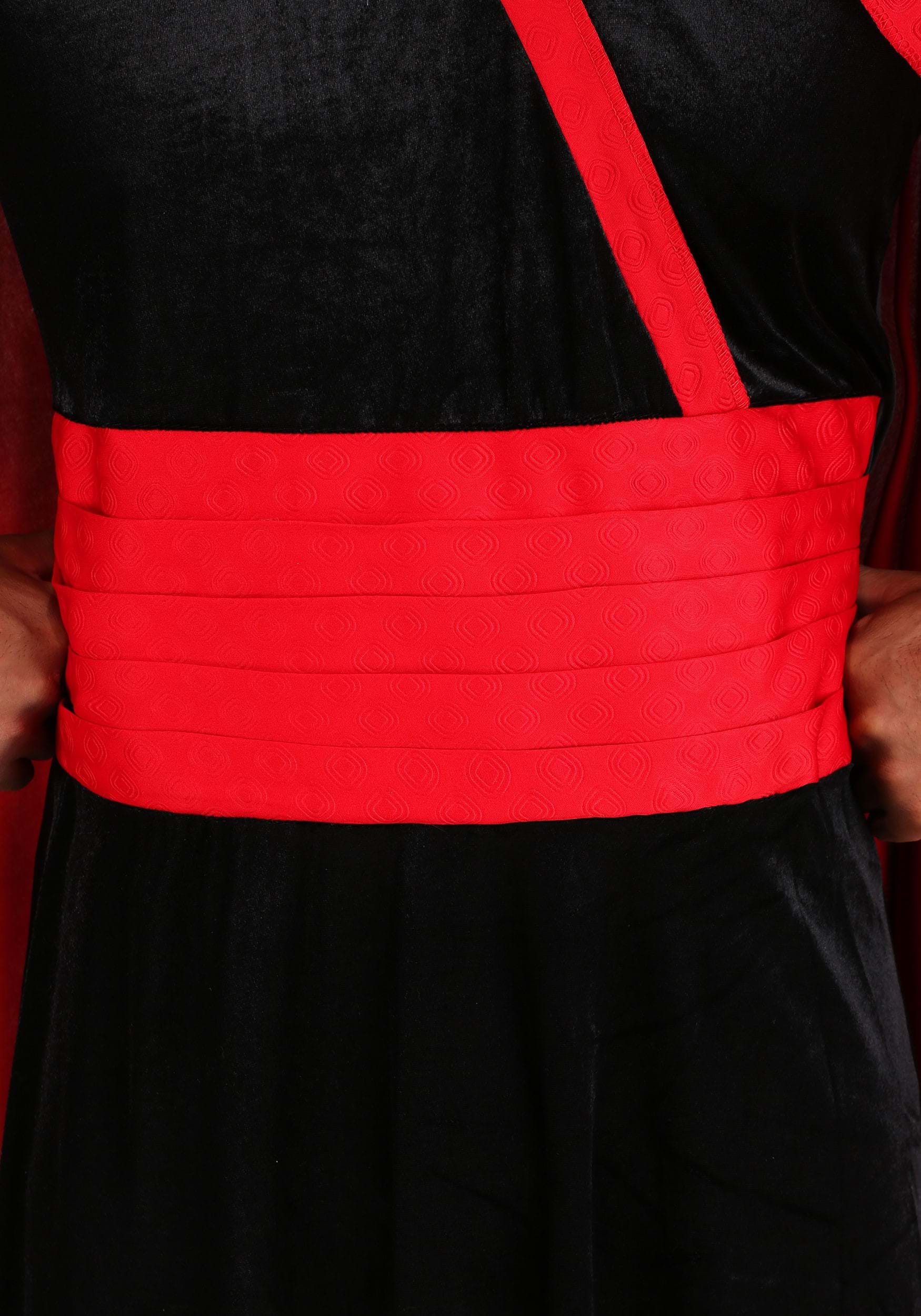 ¡Este conjunto de Jafar es exuberante con temas completos y ondulantes y una capa que hará de tu entrada malvada un verdadero obstáculo para el espectáculo! El cuerpo del look tiene una textura aterciopelada con una apariencia de abrigo en la parte superior. La cintura está envuelta con la misma tela roja texturizada de las mangas. Los hombros puntiagudos harían orgulloso a cualquier villano. Y todo el conjunto está rematado con un sombrero de terciopelo con acento de raso y una gran joya en el dobladillo, y está rematado con un espectacular velo rojo. & Nbsp; p>
