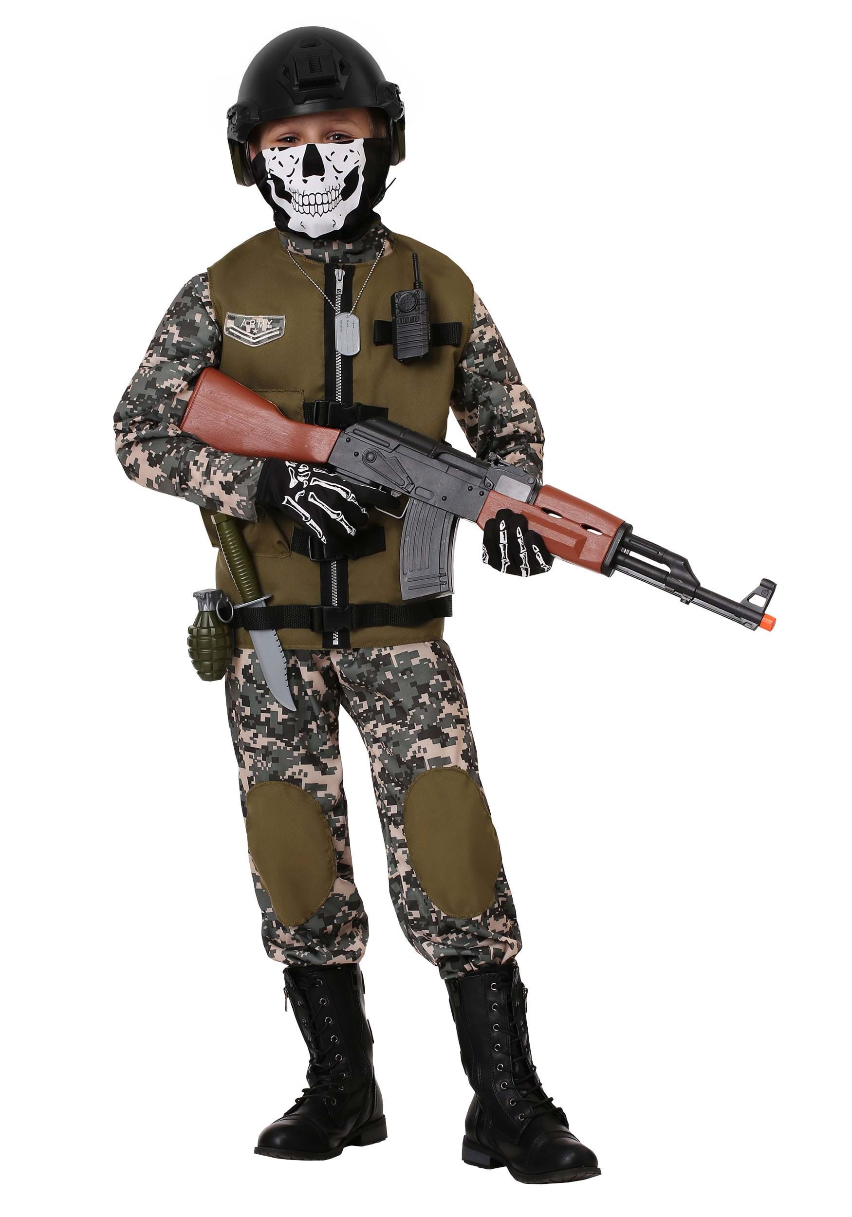 Puede estar seguro de que su hijo conseguirá reunir & nbsp;  todos  em> los dulces elegidos y evitar el daño de demonio, diablo y princesa de Disney gracias a nuestros diseñadores que crearon esta exclusiva Disfraz de Camo Trooper para niños. & Nbsp; La camisa y los pantalones tienen un aspecto de camuflaje para reforzar su sigilo en el desierto, mientras que el chaleco cuenta con relleno de fibra para aumentar el volumen de los músculos del pecho y los hombros. & Nbsp; (Además, los bolsillos de carga para el almacenamiento de dulces extra siempre son una ventaja!) & Nbsp; El casco moldeado brinda una dosis de seguridad, mientras que la máscara y los guantes de esqueleto imprimen un poco de terror e incluso camuflaje adicional mientras caminan con los muertos vivientes. & Nbsp; Si todo lo demás falla, la granada de juguete y el cuchillo pueden defender a tu conejillo de indias y pueden alegrar su victoria con el walkie-talkie al obtener esos deliciosos manjares. & Nbsp;  p>