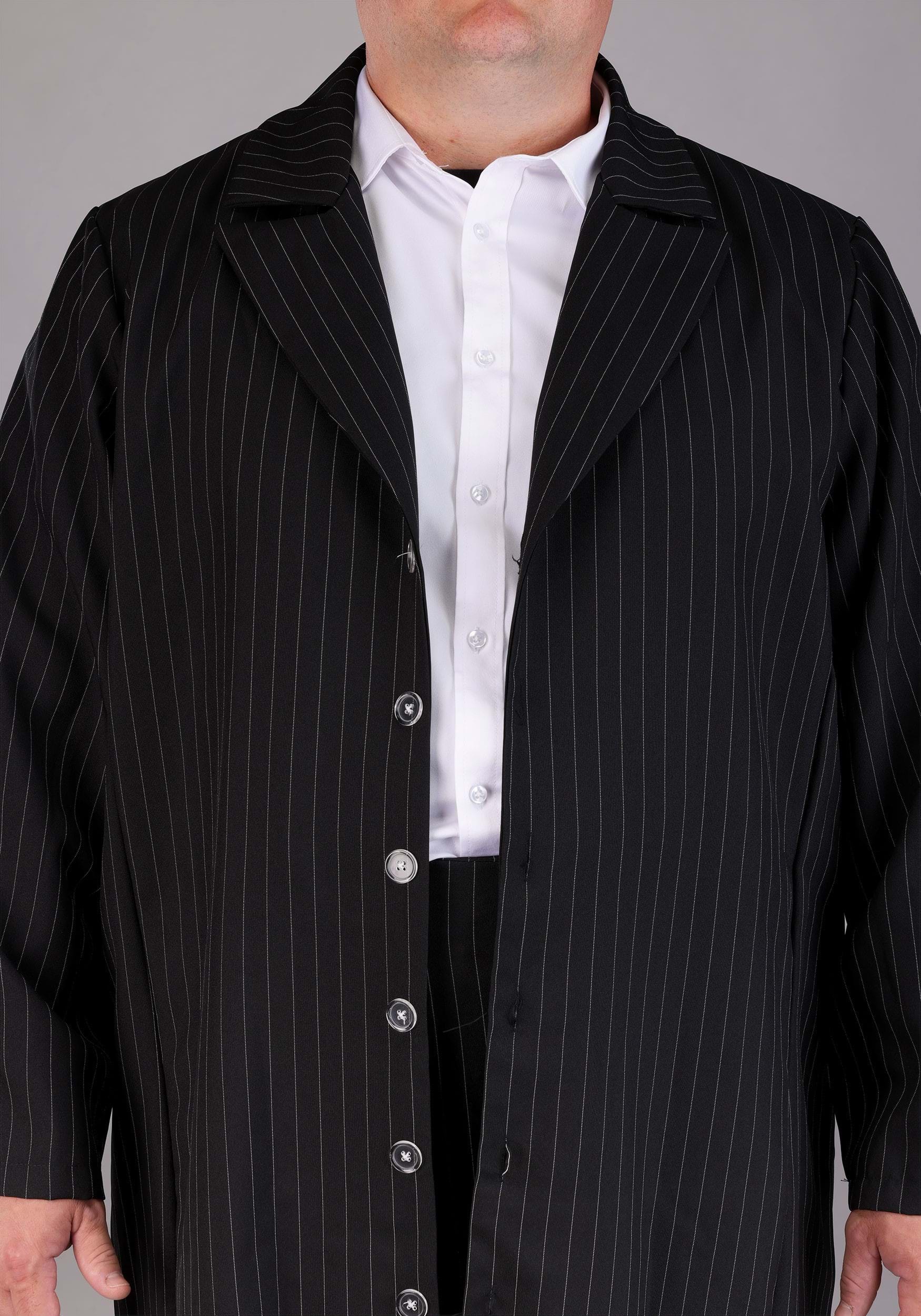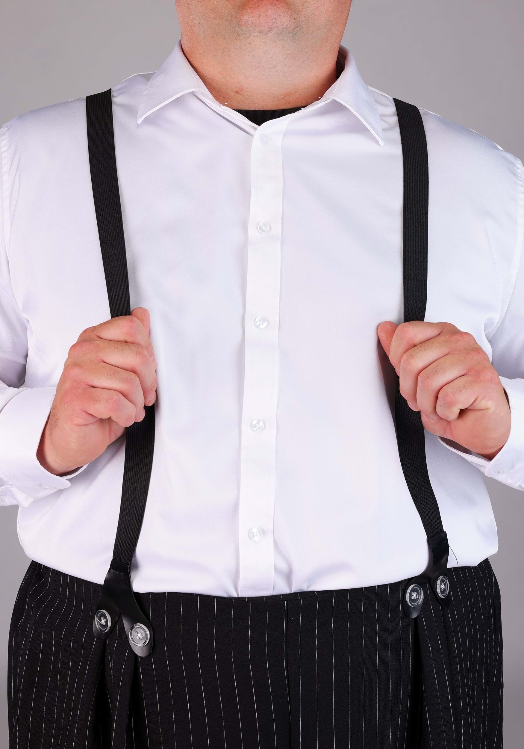 Chico, ¡no te veas bien! Te verás fantástico con este disfraz de traje de Zoot de talla grande. Te verás como un verdadero gángster de la década de 1920. Los tirantes adjuntos completan todo el aspecto retro. Este atuendo de gángster apuesto comienza con la chaqueta negra de popelina de poliéster que tiene rayas blancas. Las solapas anchas de la chaqueta y los botones del centro delantero le dan un aspecto detallado. Por no hablar de la chaqueta hasta la rodilla hace una gran declaración cuando entras en cualquier habitación. ¡Los pantalones a rayas a juego tienen una cintura elástica en la parte trasera con tirantes elásticos unidos para un ajuste cómodo que está listo para la pista de baile! También tenemos un montón de tamaños, por lo que seguramente encontrarás uno que te quede perfecto. Haz un gran disfraz de pareja con este traje combinándolo con un disfraz de aleta. P>